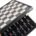 Des placages de bois soigneusement sélectionnés, des designs traditionnels et un savoir-faire spécial utilisant l'art de la marqueterie donnent vie à notre collection d'échecs en bois.