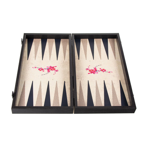 Handcrafted Oriental Cherry Blossom Art Backgammon Set - Elegant and Artistic Design