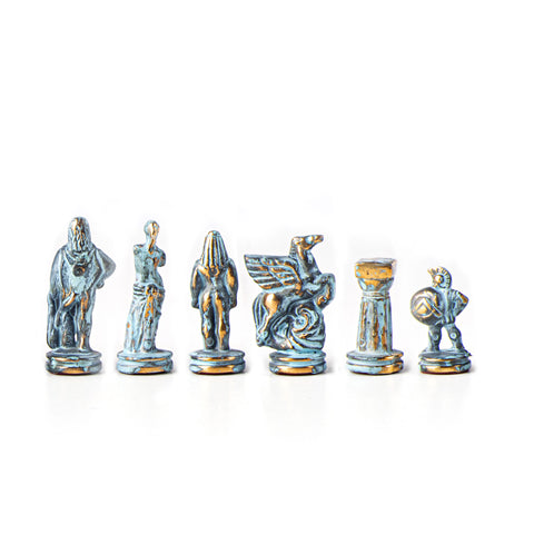 Handcrafted Spartan Warrior Chessmen Set, Blue & Brown (Small)