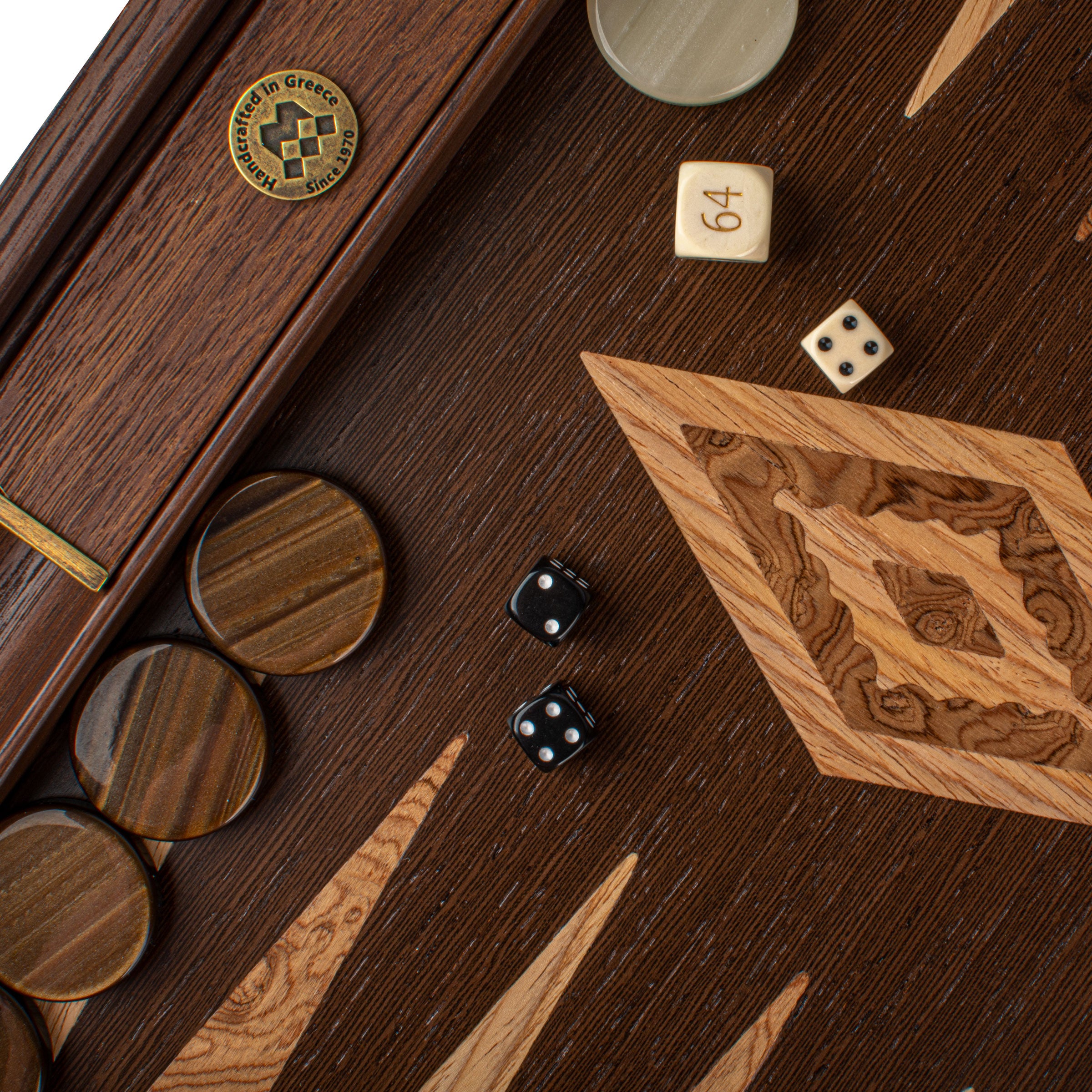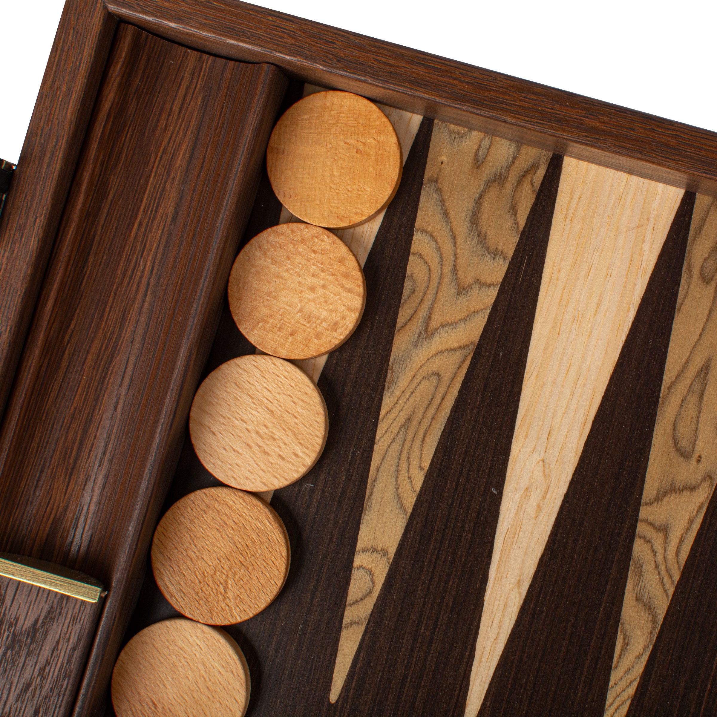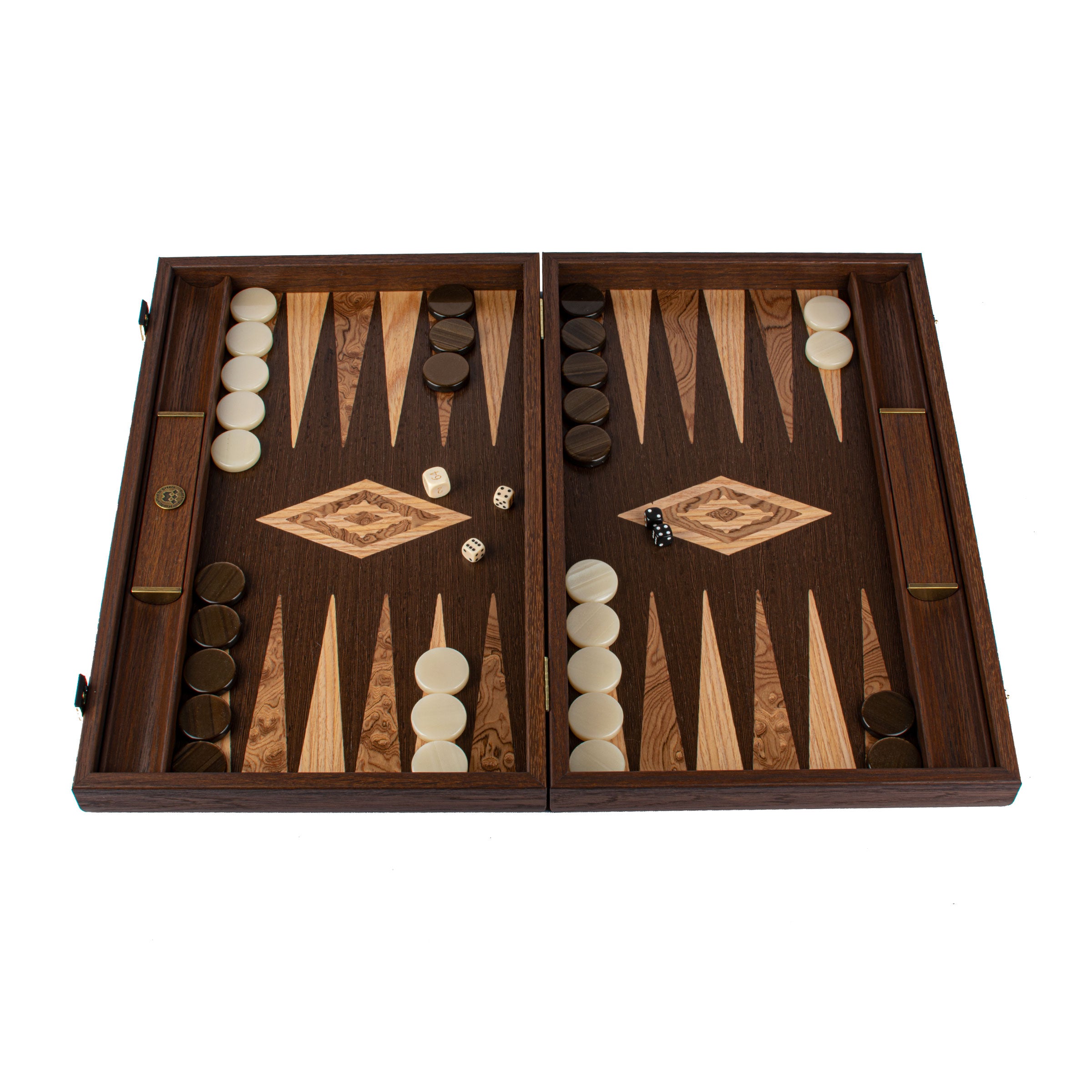 Immerse yourself in the luxurious craftsmanship of our Premium Handcrafted Wenge with Walnut Burl Backgammon Set, part of the Premium Collection by Manopoulos. This exquisite set combines the rich textures of wenge and walnut burl with the sophistication of blue oak and oak points, creating a truly timeless piece for your game collection.