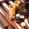 - Komplett set: Innehåller allt du behöver för ett komplett backgammonspel, allt tillverkat med samma uppmärksamhet på detaljer och kvalitet.