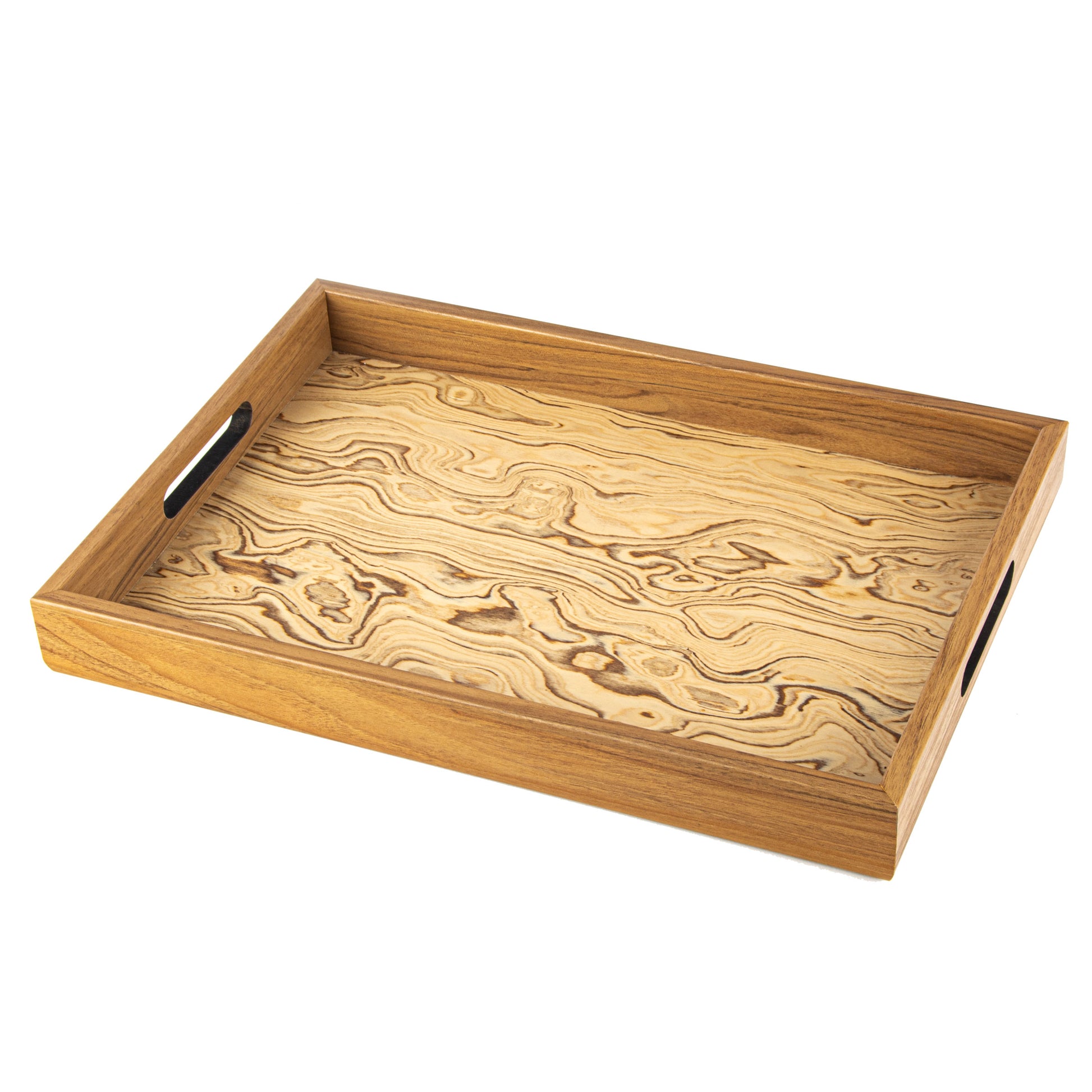 Dessa brickor är det perfekta tillskottet till alla utrymmen i alla hem. Konstruerad av ädel träfaner som oliv, valnöt etc. eller med inspirerande, tryckta mönster, kommer vår brickkollektion att göra ett unikt individualistiskt uttryck. Storleken på träbrickan är 45x32cm.